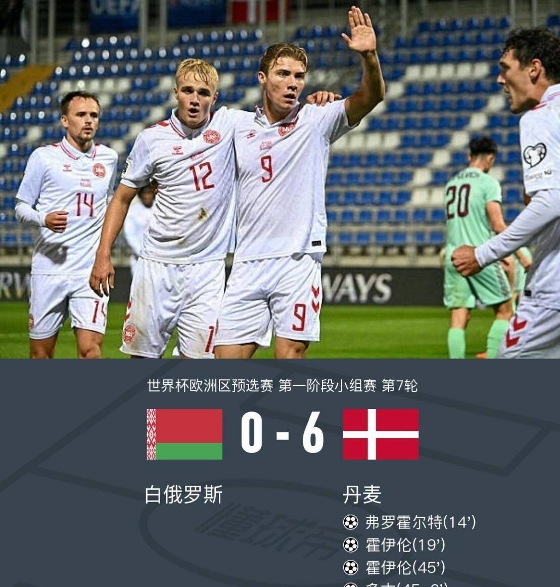 与此同时,在C组的另一场比赛中,丹麦队同样用一场酣畅淋漓的胜利回应了球迷的期待。他们在客场以6比0的比分,兵不厌诈地击败了白俄罗斯队。比赛第14分钟,克里斯滕森在禁区内送出精妙的倒三角传中,弗洛霍尔特冷静推射破门,为球队首开纪录。仅仅5分钟后,霍伊伦展现出惊人的脚下技术,一脚凌空扫射再次洞穿了对方的球门。在上半场即将结束前,霍伊伦更是势不可挡,不仅梅开二度,还巧妙助攻队友多尔古完成垫射得分。下半场,德雷尔接过了进球的接力棒,他在第66分钟和第78分钟连进两球,最终将比分锁定在6比0。这场胜利巩固了丹麦队在C组的领先地位。同组的苏格兰队也发挥出色,以3比1逆转击败了希腊队,与丹麦同积7分,但由于净胜球的劣势暂居小组第二。