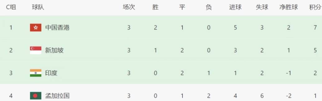 在前两轮里,香港队先是0-0战平新加坡,随后以1-0小胜印度,拿到4分,处在小组的主动权之中。真正决定命运的,是同孟加拉国的那场对决。比赛第13分钟,孟加拉国率先取得进球,给香港制造不小压力。上半场补时阶段,归化前锋艾华顿帮助香港扳平。下半场开始后,孟加拉国一度通过一次回传失误被香港抓住机会,李小恒利用单刀机会打入一球,将比分改写为2-1。仅过了15分钟,艾华顿再次送出助攻,李小恒再度破门,将领先优势扩大到3-1。
