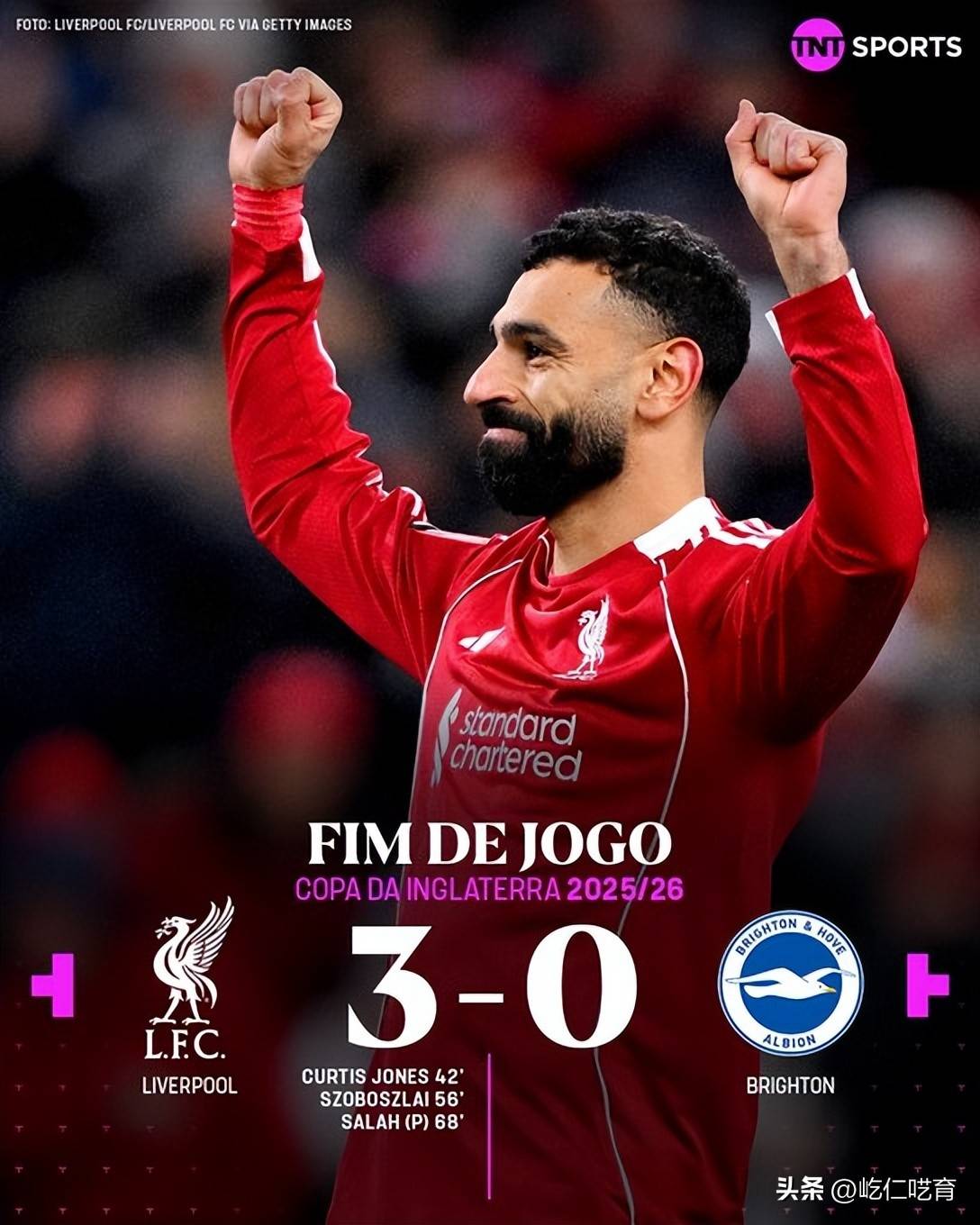 最终,再无进球到来的双方,也以利物浦3-0布莱顿的结果,结束了本场足总杯赛事的较量。