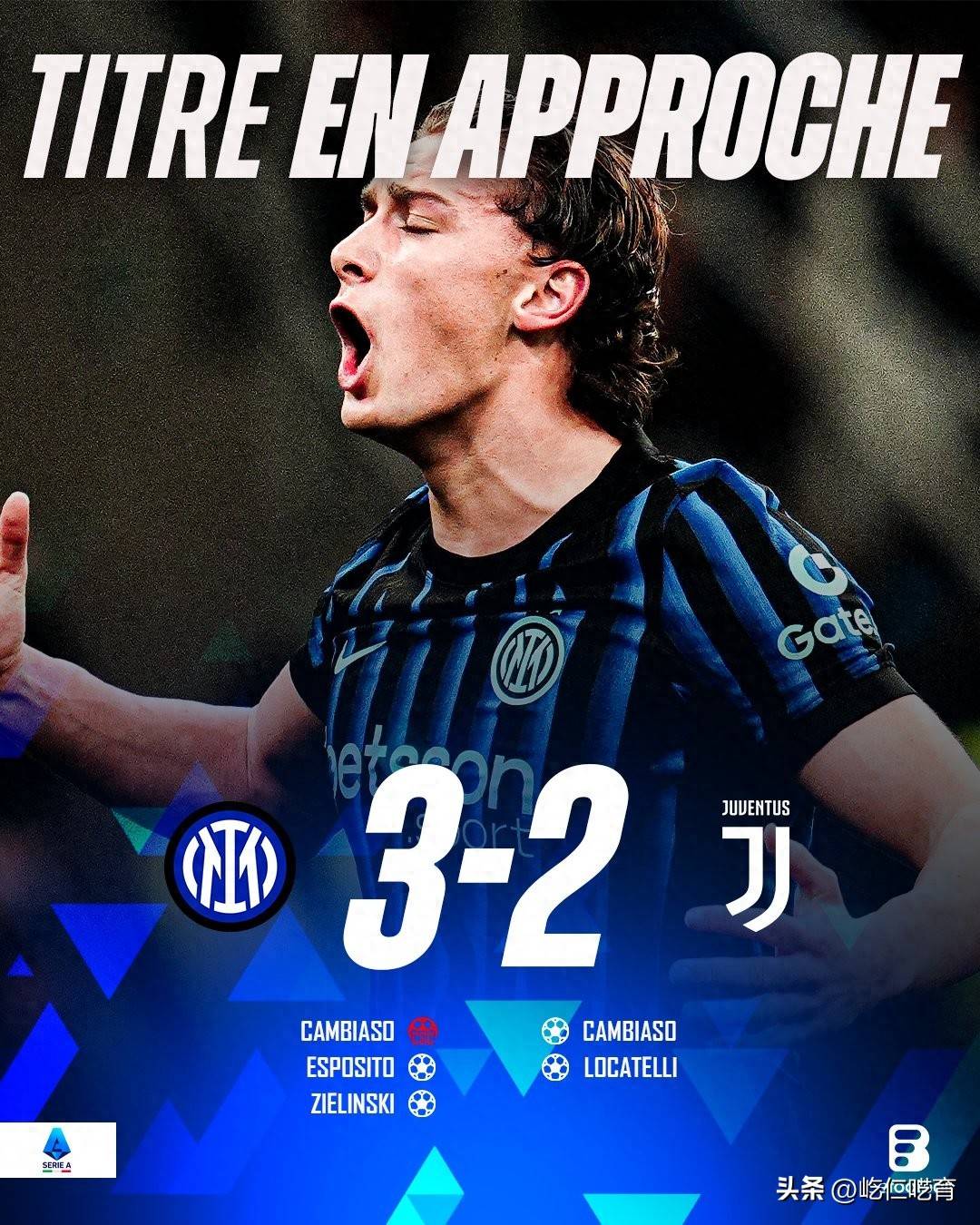 但,这样一场重磅对话,怎可能在最后时刻没有惊喜?第90分钟泽林斯基的绝杀,让蓝黑军团最终在梅阿查以3-2的比分击败尤文从而获得了本场比赛的最终胜利!