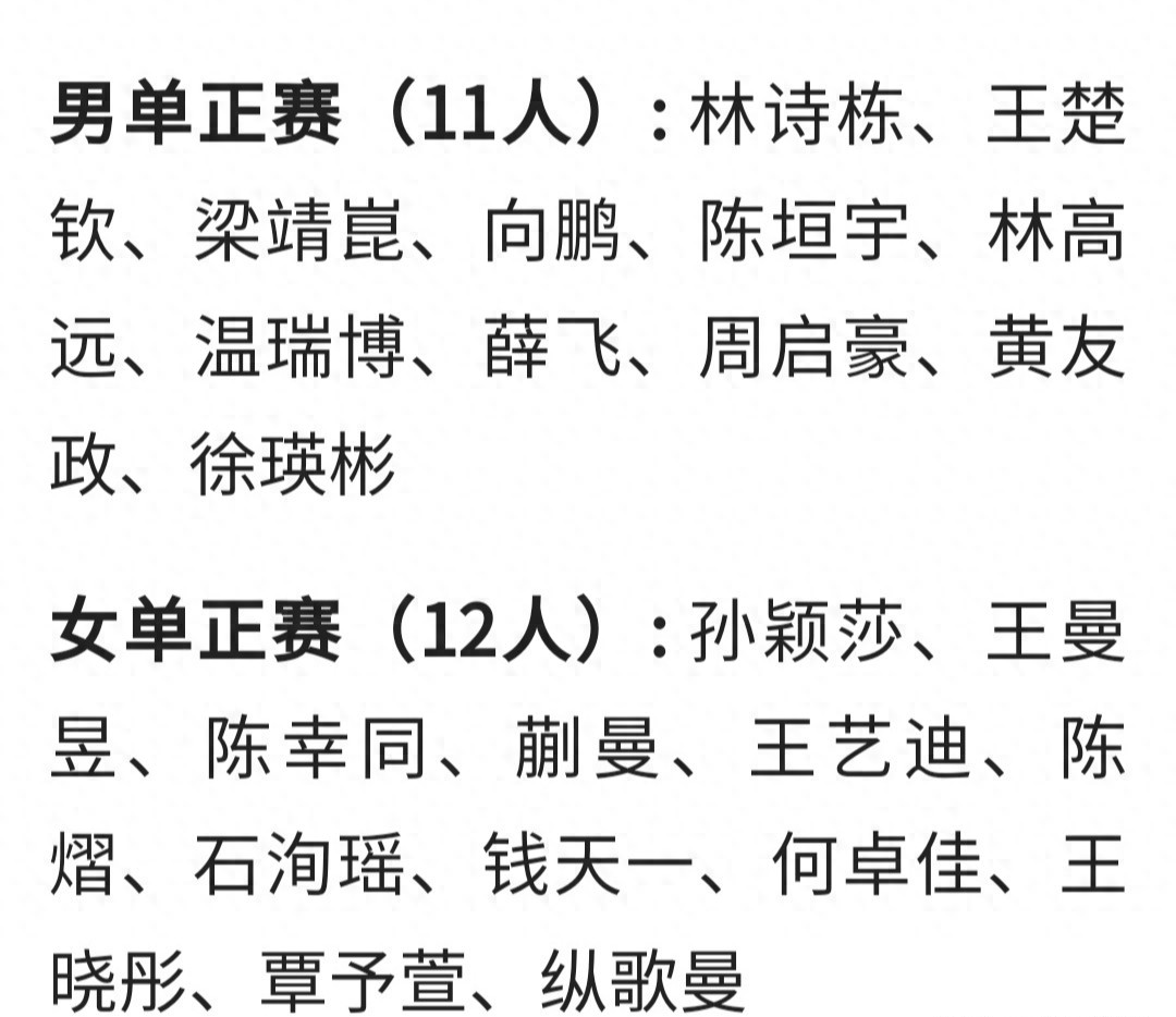 在前三天的资格赛中,国乒10人参加比赛,最终4人掉队出局,男单为李和宸(首轮)、周恺(最终轮)、徐海东(最终轮);女单为姚睿轩(第二轮)。袁励岑、陈俊菘、杨屹韵、朱思冰、徐奕、朱梓予6人顺利晋级正赛。至此,国乒共有29人出战正赛。
