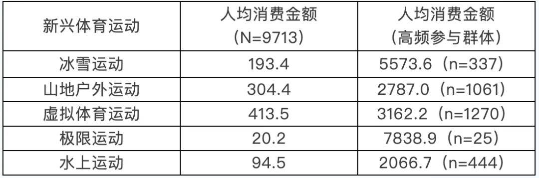 根据上海体育市场、政策导向,本报告对冰雪运动、山地户外运动、虚拟运动、极限运动、水上运动5类新兴体育项目进行居民体育消费情况调查。数据显示,2023 年有近三成的上海市居民参与过新兴运动,且消费呈现出多元化和大众化共同发展的格局,市场潜力大。其中,虚拟体育运动和山地户外运动具有广泛的群众基础,高频参与人数众多,且人均消费水平较为适中,贴近大众消费能力。相对而言,极限运动和冰雪运动具有专业化和高消费的特征,高频参与人数较少,但是人均消费水平显著偏高,尤其是极限运动,仅有25人高频参与,其人均消费金额高达7837.9元。可以看出,新兴体育运动人均消费金额受项目本身性质影响,群体参与及消费支出存在明显分化。综合高参与率、高频参与群体人均消费金额以及总体人均消费金额来看,山地户外运动和虚拟体育运动未来市场相对潜力较大。总体来看,群体参与趋势和参与背后的需求都揭示了新兴运动可能带来更多的消费契机,未来应更好地利用群体特性及其需求分化,促进冰雪运动、山地户外运动、虚拟体育运动、极限运动、水上运动等新兴运动的发展。