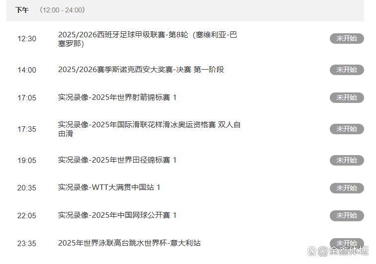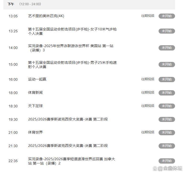 需要提醒的是,直播安排有时会有临时调整,比如斯诺克赛事的部分场次可能主要在CCTV5 播出,时间也可能微调,最好通过央视体育官方App确认最终安排。