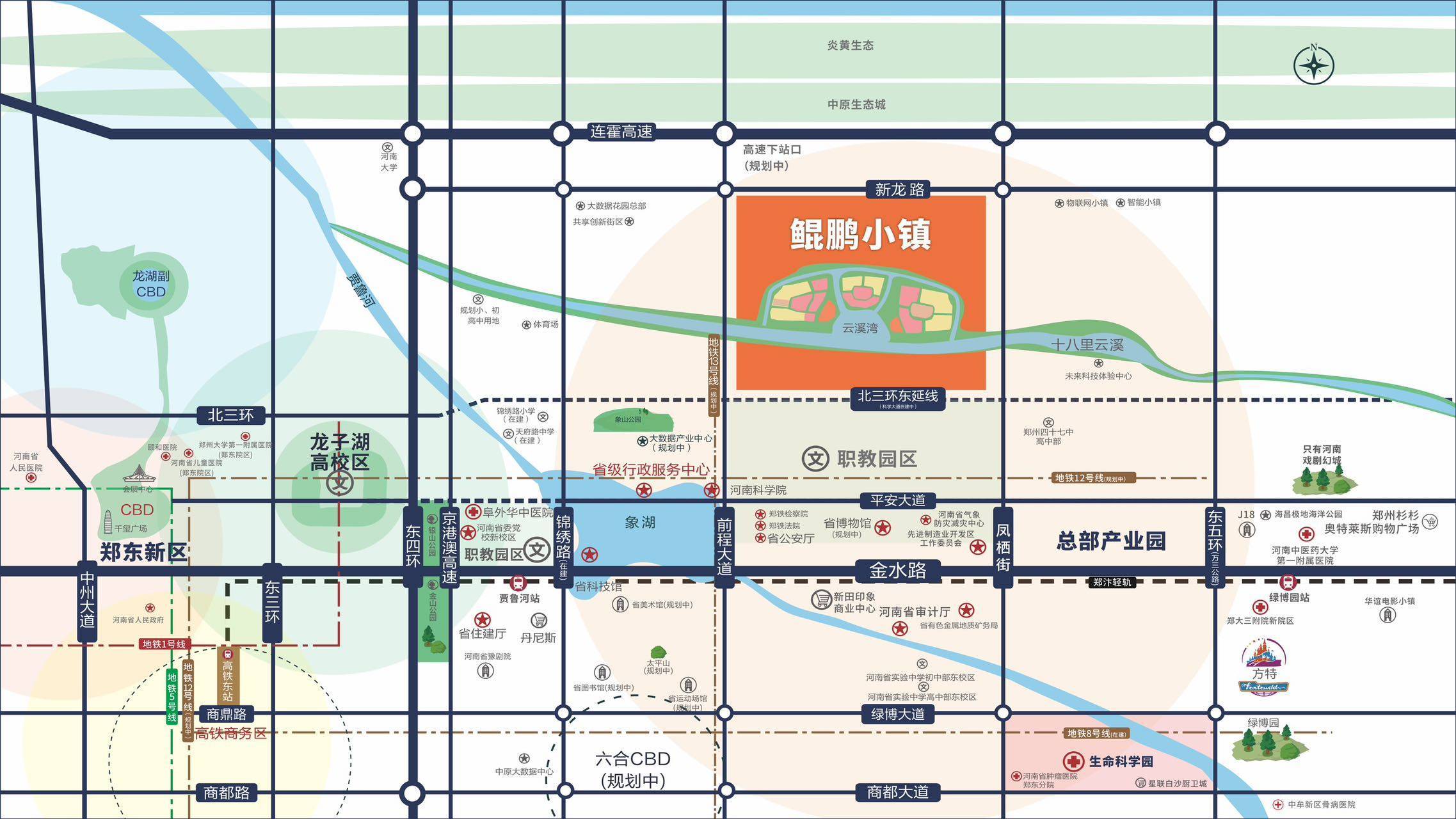 连南贯北,承东接西,优享公路、高速、机场、地铁(12/13号线规划中)、轻轨、高铁等多维交通路网