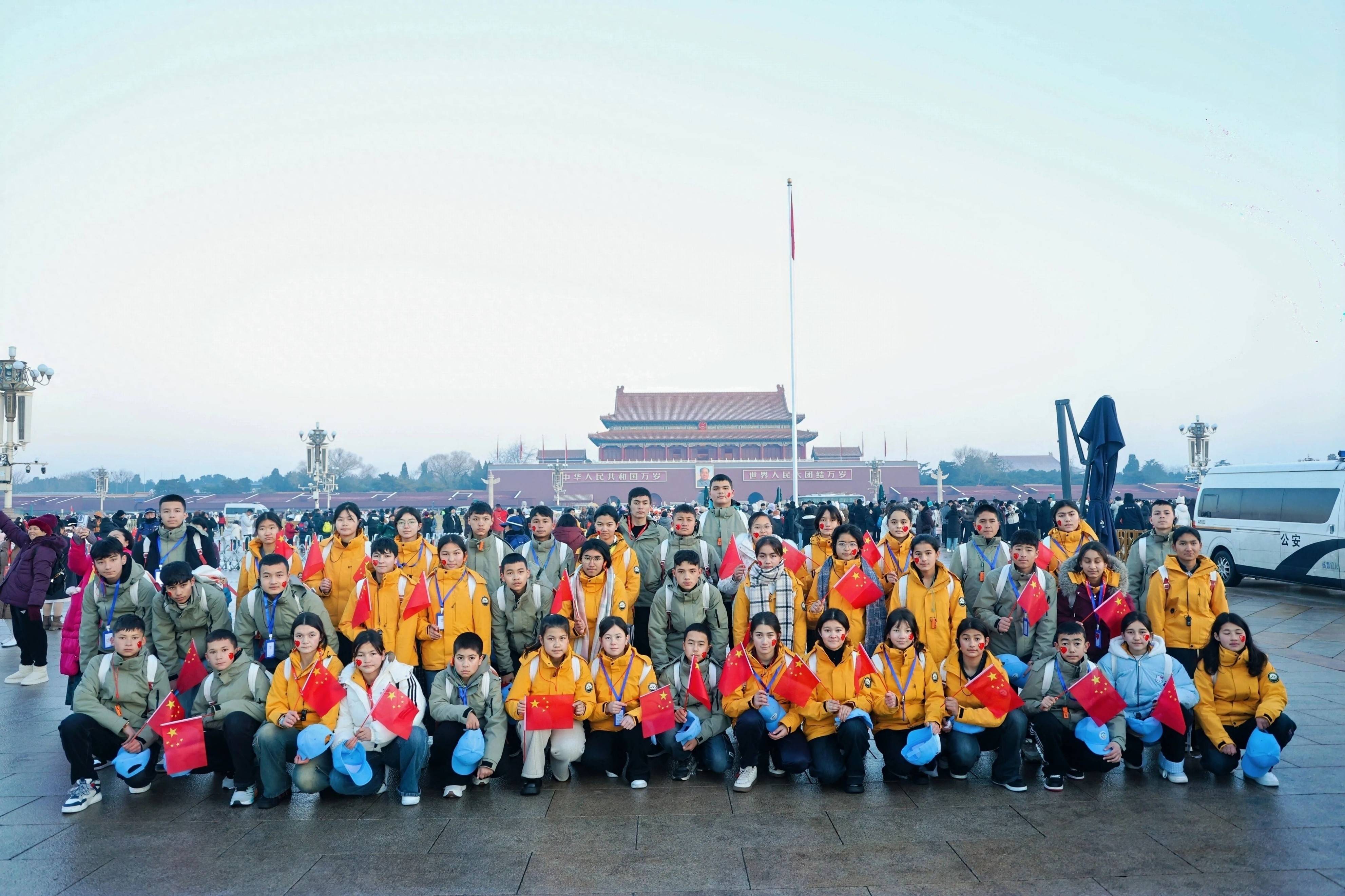 在广场,学生们观看了庄严肃穆的升旗仪式,由此开启了在北京的研学活动。