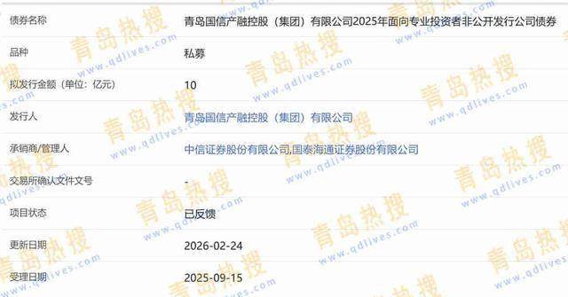 2026-02-28体育,足球,波胆,反波胆,角球,串关,大小球,世界杯,欧洲杯,比分,足球比分,赛事,足球赛事,电竞赛事,体育赛事直播,足球直播平台,世界杯直播,足球直播,体育直播,NBA直播,游戏直播,LOL直播青岛热搜网获悉,青岛国信产融控股(集团)有限公司2025年面向专业投资者非公开发行公司债券项目2月24日项目状态更新为“已反馈”。
