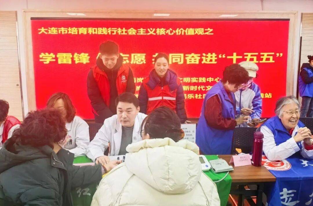 与此同时,中心党群党支部的党员志愿者们来到西岗区日新街道民乐社区新时代文明实践站,作为结对共建单位,深度参与到街道“学雷锋做志愿 共同奋进‘十五五’”志愿服务大集中。志愿者们身着统一标识,亮明党员身份,将主题党日与志愿服务深度融合,在服务社区、服务群众中作表率、当先锋。