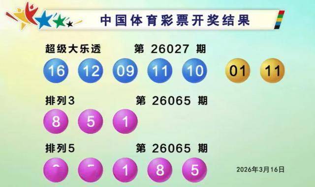 2026-03-19体育,足球,波胆,反波胆,角球,串关,大小球,世界杯,欧洲杯,比分,足球比分,赛事,足球赛事,电竞赛事,体育赛事直播,足球直播平台,世界杯直播,足球直播,体育直播,NBA直播,游戏直播,LOL直播【开奖回顾】3月16日,开出的奖项有体彩的2026027期大乐透,2026065期排列三/五,以及福彩的第2026065快乐8,2026027期七乐彩,2026065期福彩3D。