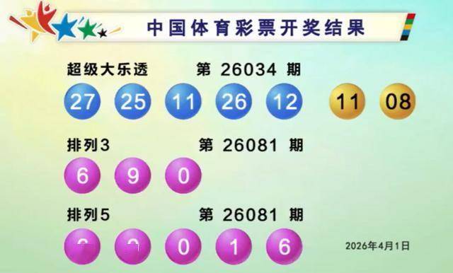 2026-04-06体育,足球,波胆,反波胆,角球,串关,大小球,世界杯,欧洲杯,比分,足球比分,赛事,足球赛事,电竞赛事,体育赛事直播,足球直播平台,世界杯直播,足球直播,体育直播,NBA直播,游戏直播,LOL直播【开奖回顾】4月1日,开出的奖项有体彩的2026034期大乐透,2026081期排列三/五,以及福彩的第2026081快乐8,2026035期七乐彩,2026081期福彩3D。