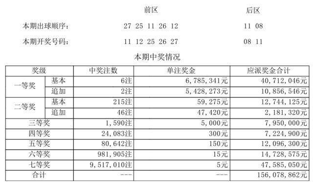 本期一等奖出自:江苏(基本1注追加1注)、浙江(基本1注)、山东(基本1注)、湖南(基本2注)、甘肃(基本1注追加1注)。