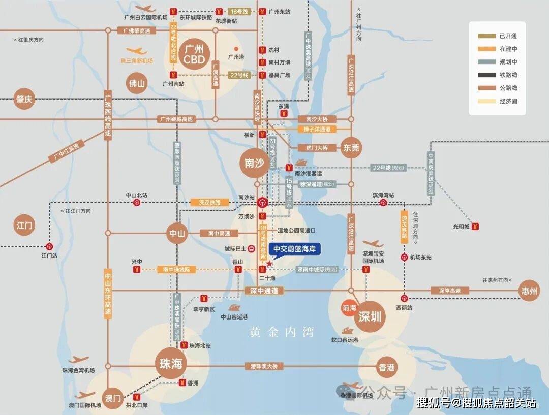 中交蔚蓝海岸交通优势显著,形成“轨道+高速+快速路”三维立体交通网络,无缝衔接大湾区核心城市。轨道交通方面,项目距在建地铁18号线南延段(南中城际)二十涌站约500米,该线分钟可达广州珠江新城,45分钟直达珠海拱北口岸。同时,深南中城际在二十涌站南侧设站,进一步强化区域交通枢纽地位。高速公路方面,项目紧邻深中通道南沙支线,通过该通道可快速抵达深圳宝安国际机场、前海自贸区,车程控制在30分钟内。此外,项目周边有广州绕城高速、广澳高速等多条高速线路,可便捷通往广州各区及珠三角城市。快速路方面,万顷沙大道、新垦大道等城市主干道环绕项目,自驾出行便捷高效。公交系统方面,项目周边已开通南沙25路、南沙G1路、南沙旅游1路等公交线路,覆盖万顷沙镇及南沙主要区域,观鸟屋站、十九涌站等站点距项目约1000米。值得一提的是,项目规划有社区巴士接驳地铁口,预计2027年同步投入使用,进一步提升业主出行便利性。三维交通网络的完善,使项目实现大湾区1小时生活圈,满足业主通勤、商务、旅游等多元化出行需求,执掌城市繁华。