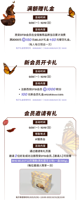 西安DT51不仅是一处购物场所,更是生活方式的目的地,一个能让人愉快探索生活之美、畅快自由表达、感受人间烟火的美好生活之地。为了给予消费者们更好的购物体验,西安DT51精心规划多重会员专属福利活动,自9月29日试营业开启后持续放送。