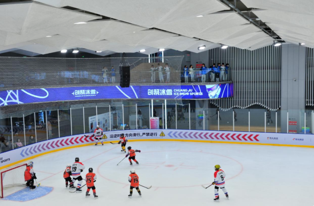 创聚冰雪陕西国际体育之窗国际标准线; 超大冰面,是西北地区首屈一指的专业赛事级真冰场。创聚冰雪真冰场不仅具备对标冬奥赛场的硬件条件,更配备专业教练团队,由中国花样滑冰国家队、俄罗斯冰球国家队优秀退役运动员组成,为青少年儿童提供安全专业的运动指导。