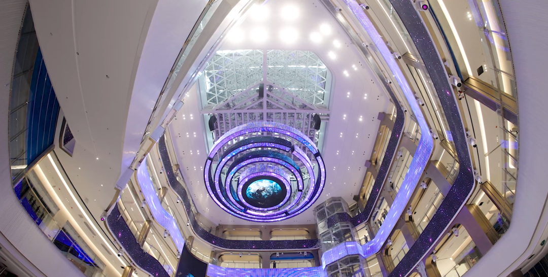 西北首座千万级星空装置“银河系”中庭艺术空间,倾铸《时空旅行》灯光秀。漫步其中,如宇宙漫游;律动跳跃间,冰面与星河辉映,冰舞灵动盎然,尽显冰上艺术魅力。
