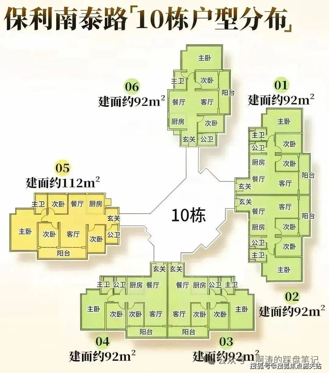 保利海玥项目总占地面积约4.22万㎡,总建筑面积约14.35万㎡,整个社区仅规划9栋住宅,总户数约1200户,是海珠西核心区极为稀缺的低密大型居住社区。很多人可能对这些数字没有明确的概念,我们可以用日常的生活场景来给大家做一个翻译,项目3.4的容积率,意味着我们在社区里少盖了3栋楼,多出了约3.2万㎡的中央大花园,这个面积相当于4.5个标准足球场,你晚饭后在社区里散步,不用再担心人挤人,孩子在花园里奔跑玩耍,也有足够宽敞的空间,这在容积率普遍超过4.0的海珠西老城区,是绝对难得的居住体验。项目的建筑限高为100米,所有楼栋的层数均控制在32层以内,其中6栋板式楼王仅30层,相比于周边动辄40层以上的超高层住宅,更低的楼层意味着更少的住户,更充足的电梯资源,更短的等待时间,日常出行更加便捷,也能拥有更开阔的视野与更充足的采光。项目的绿化率达到约35%,搭配社区外部约1.68万㎡的市政公园,整体绿化面积超过4.8万㎡,相当于每一户业主,都能拥有约40㎡的绿化空间,推窗见景,下楼入园,真正实现了在城市核心区的公园式居住。梯户比方面,我们根据不同楼栋的定位,做了精细化的设计,其中1栋、10栋为3梯6户,9栋为2梯5户,楼王楼栋为2梯2户的板式设计,最高梯户比达到1:2,哪怕是早晚高峰,也不会出现长时间等电梯的情况,极大提升了居住的舒适度与私密性。项目的车位配比达到1:1.25,总车位数约1500个,完全满足全家庭的停车需求,哪怕是家里有两辆车,也无需担心停车难的问题,同时社区内实现了完全的人车分流,车辆进入社区后直接驶入地下车库,地面空间全部留给园林景观与业主休闲活动,老人散步、孩子玩耍,都更加安全放心。项目的得房率最高达到约85%,远高于广州新房市场普遍75%左右的得房率均值,更高的得房率意味着更少的公摊面积,更多的实用空间,同样的建筑面积,你能拥有更宽敞的居住体验,相当于花同样的钱,买到了更大的使用面积。
